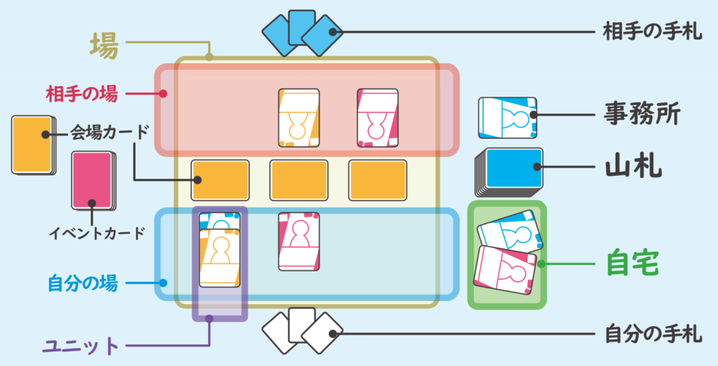 | 場 | 互いのカードがプレイされている全エリア。 |
